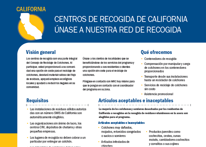 California Collection Site Information Sheet (Spanish)