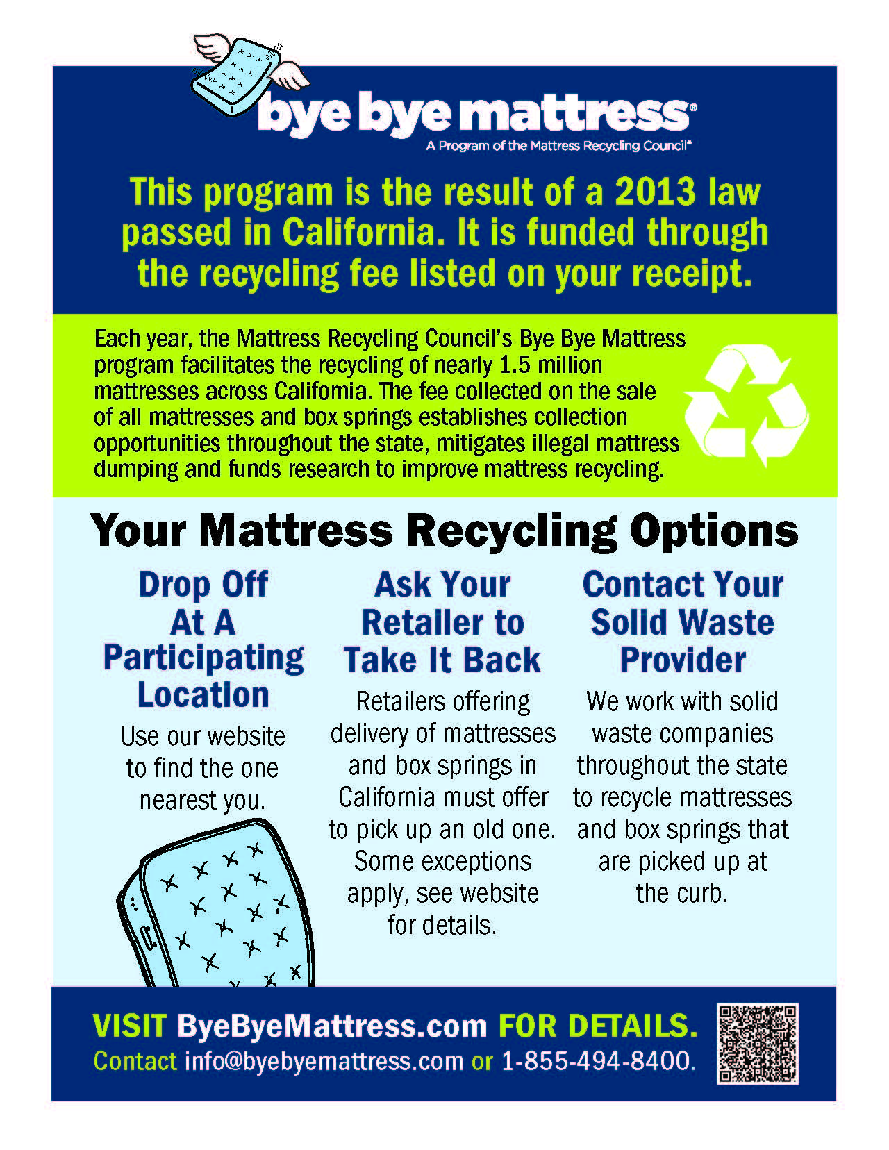 You are being redirected to ByeByeMattress.com to learn how to recycle in your state.