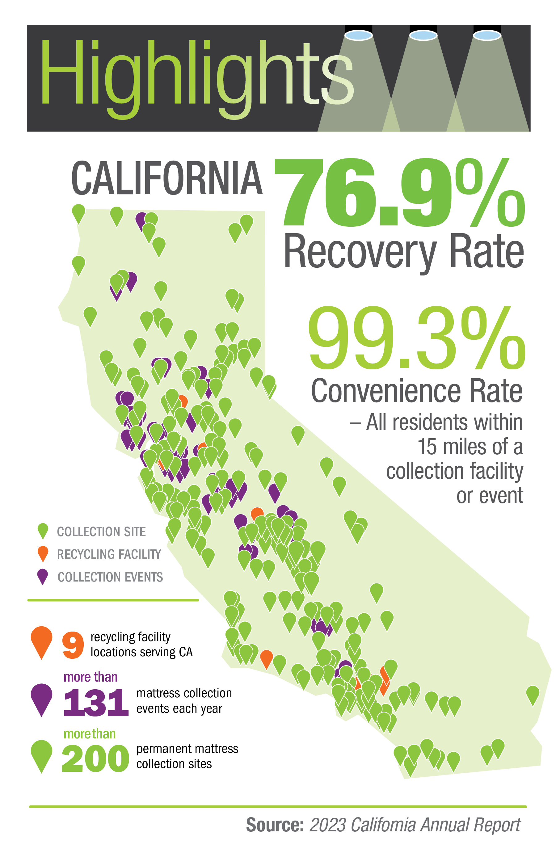 Legislatures in Connecticut, California and Rhode Island passed ISPA-supported legislation establishing statewide mattress recycling programs.