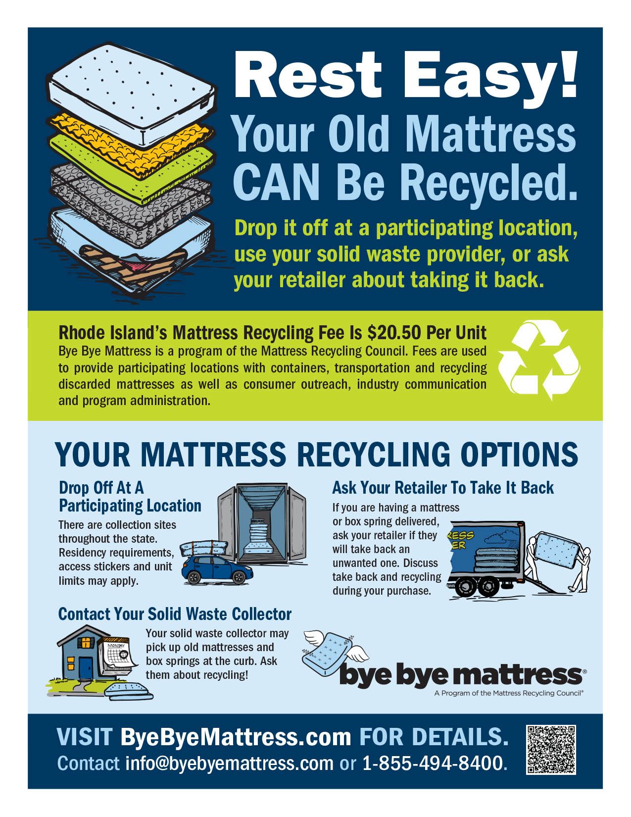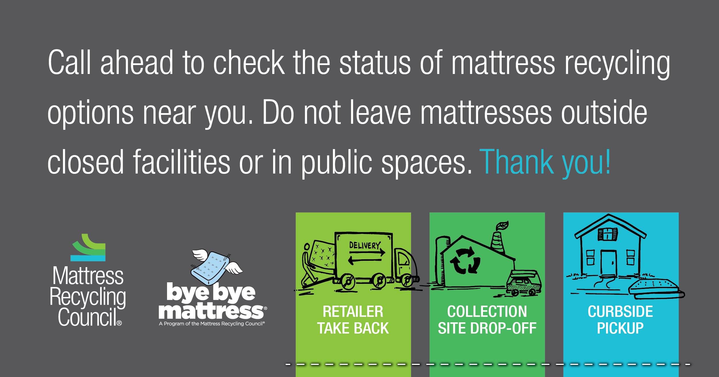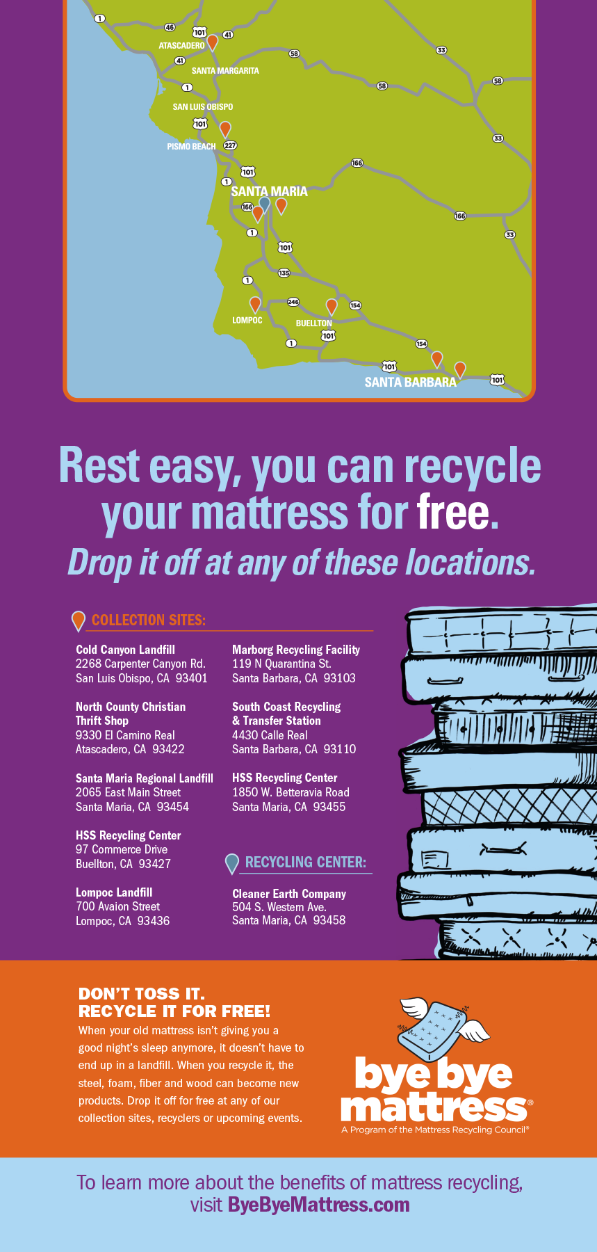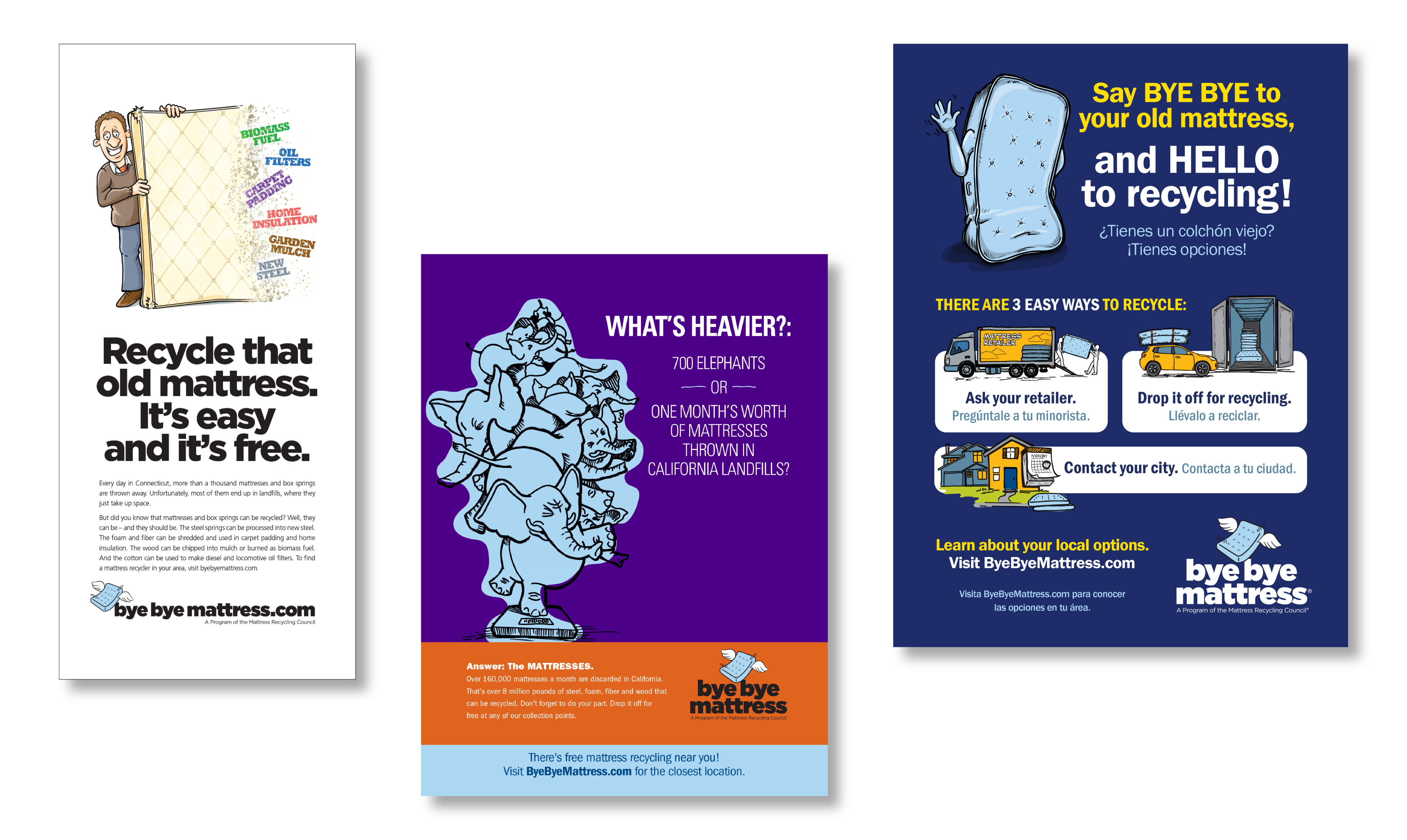 That’s where Bye Bye Mattress comes in. Developed as MRC’s consumer-facing brand, it provides a relatable voice to help people understand how and why to recycle their mattresses. Bye Bye Mattress engages the public through education, advertising, and community outreach—always backed by the mission and credibility of MRC.