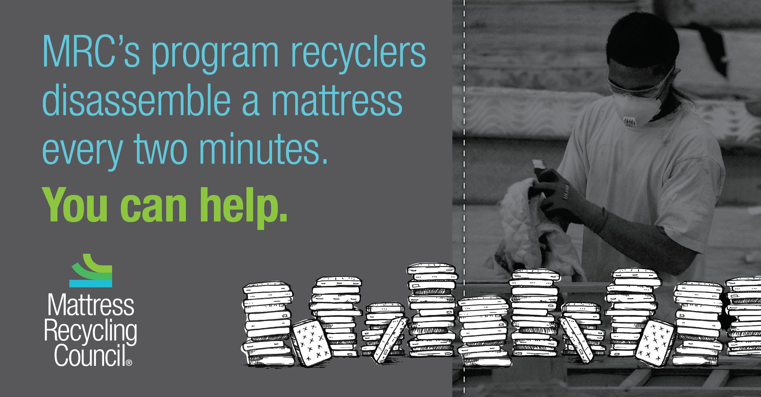 MRC is a leader in mattress recycling, providing states an effective solution for keeping these products from being landfilled, incinerated or illegally dumped, and fostering innovation to strengthen mattress recycling’s efficiency and viability.