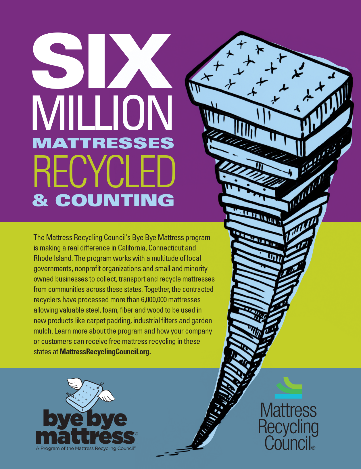 The Mattress Recycling Council is celebrating a decade of success in statewide mattress recycling by commemorating the launch of its Connecticut program. As the first of its kind in the country, it paved the way for additional programs in California, Rhode Island, and Oregon.