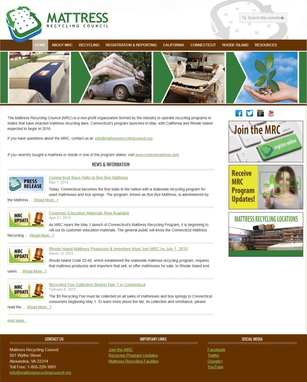 MattressRecyclingCouncil.org informs industry audiences, regulators, and stakeholders of the program implementation, performance metrics and governing state laws.