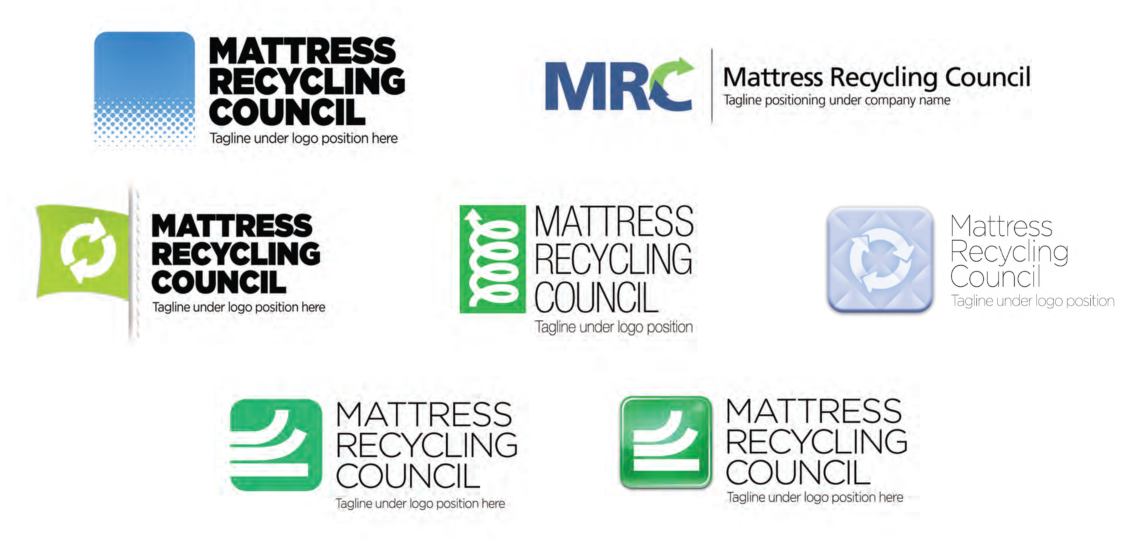 As the Mattress Recycling Council’s mission and impact expanded, the brand needed a visual identity that reflected its evolution. Many different logos (shown below) were considered.