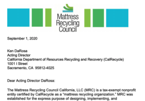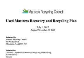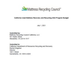 Chapter 388, Statutes of 2013 [Hancock, SB 254] set forth the requirements of the statewide Mattress Stewardship Program. Chapter 371, Statutes of 2014 [Hancock, SB 1274] clarified definitions, report submittals and record keeping requirements. Chapter 673, Statutes of 2019 [Garcia, AB 187] amended definitions, plan, budget and annual reporting components, and added additional baseline and goal requirements. CalRecycle also issued the Code of Regulations for the Used Mattress Recovery and Recycling Program.