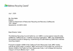 MRC’s 2024 Annual Report describes the program’s continued expansion and the steps taken to provide mattress recycling throughout California, the status of research projects aimed at finding new and better uses for mattress materials, and the outcomes of our efforts to assist communities with mitigating illegal dumping.