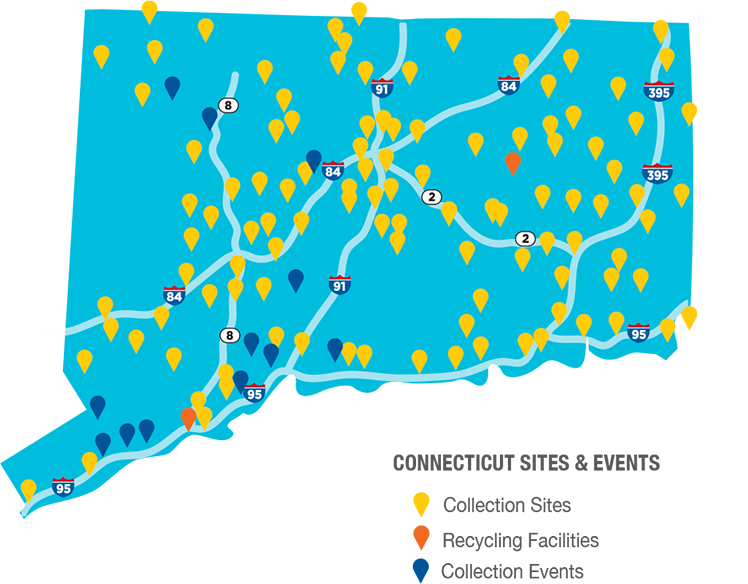 MRC’s Bye Bye Mattress is accessible to residents throughout Connecticut, offering no-cost opportunities for residents to discard their used mattresses. Mattresses are collected through a variety of channels, offering consumers and businesses options for recycling. 157 communities offer direct access to the program through town transfer stations, public works yards, collection events, and municipal curbside pickup programs. In addition, more than 394 other public and private entities across Connecticut participate in the program including mattress retailers, hotels, universities, junk haulers and apartment complexes. MRC continues to expand participation from municipal transfer stations, as well as increase the number of mattresses collected from retailers, hotels and educational facilities for recycling.