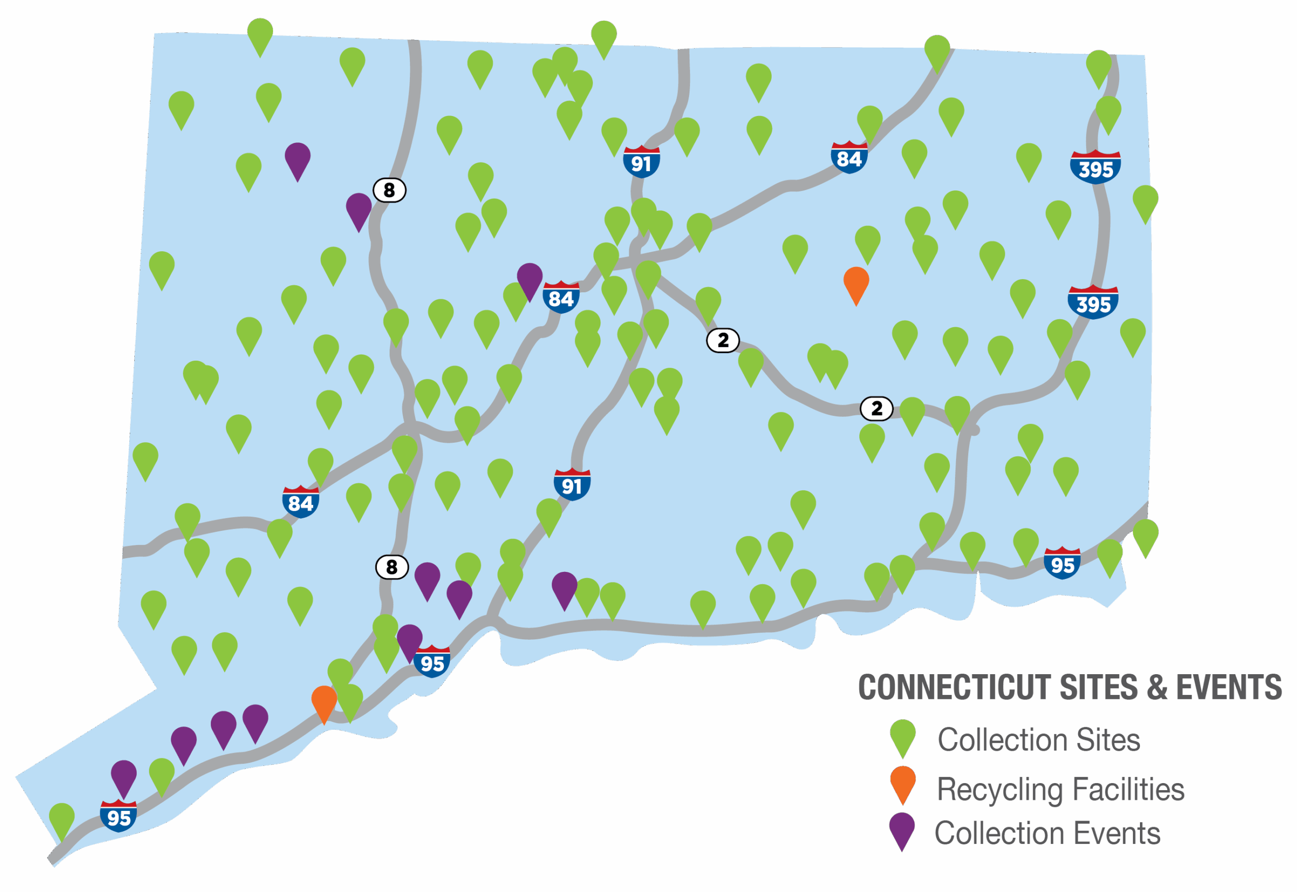 MRC’s Bye Bye Mattress is accessible to residents throughout Connecticut, offering no-cost opportunities for residents to discard their used mattresses. Mattresses are collected through a variety of channels, offering consumers and businesses options for recycling. 157 communities offer direct access to the program through town transfer stations, public works yards, collection events, and municipal curbside pickup programs. In addition, more than 394 other public and private entities across Connecticut participate in the program including mattress retailers, hotels, universities, junk haulers and apartment complexes. Three public drop-off locations are also available to state residents. MRC continues to expand participation from municipal transfer stations, as well as increase the number of mattresses collected from retailers, hotels and educational facilities for recycling.